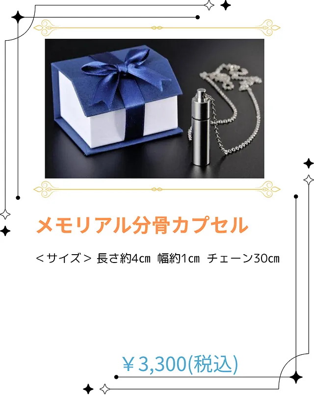 お骨を少量分骨カプセルに納めてお手元に残してあげることも可能です。
