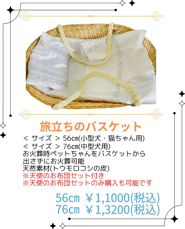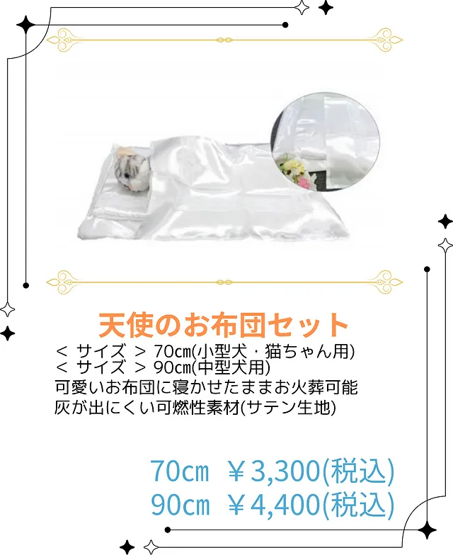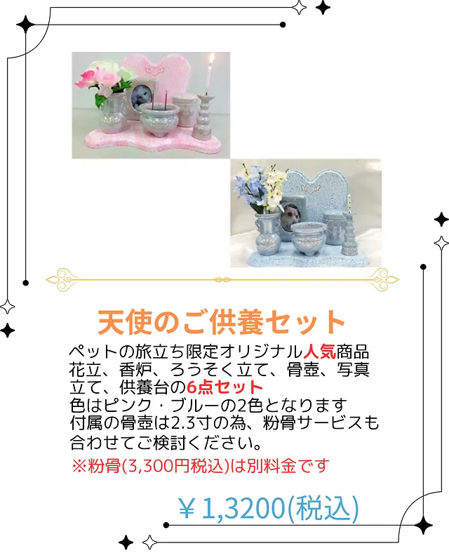 上記以外にもご自宅用ご供養セット・天使のつぼケース・巾着骨袋